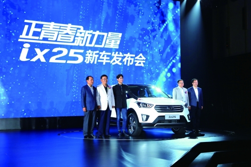 自今年4月亮相北京车展算起,ix25应该是北京现代预热周期最长的车型之一。金秀贤的代言让它受到广泛关注,今年的北京车展上,由于“都教授”的超强魅力,车展组织方不得不临时闭馆。在广州上市的前一天,金秀贤的粉丝早早便把白云机场层层包围,导致周边交通受到影响。面对如此场面,有人说“ix25月销5000辆,有金秀贤代言就够了。”