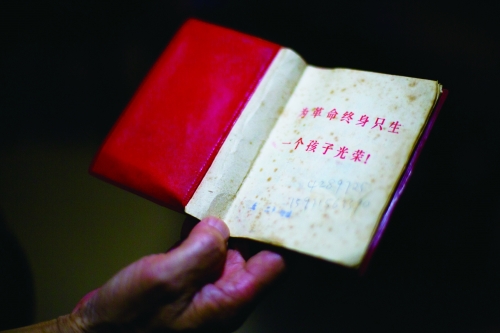 2014年4月21日,广州,在政策号召下,黄文盛当年只生了一个孩子,并领取了独生子女证。证件的扉页上这样写道:“为革命终身只生一个孩子光荣”。 |