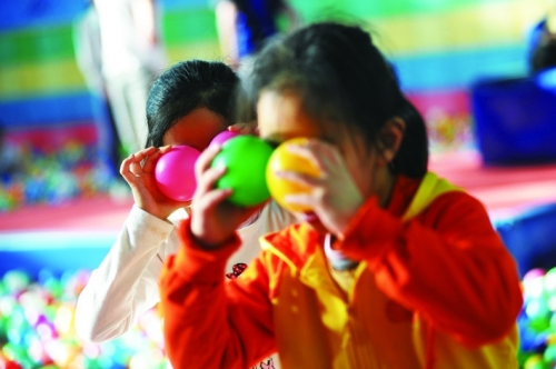 2014年3月22日,北京,孩子们在一家儿童乐园里的海洋球里玩耍。缺少了兄弟姐妹的陪伴,大多数独生子女只能在玩具和游戏中寻找快乐。 |