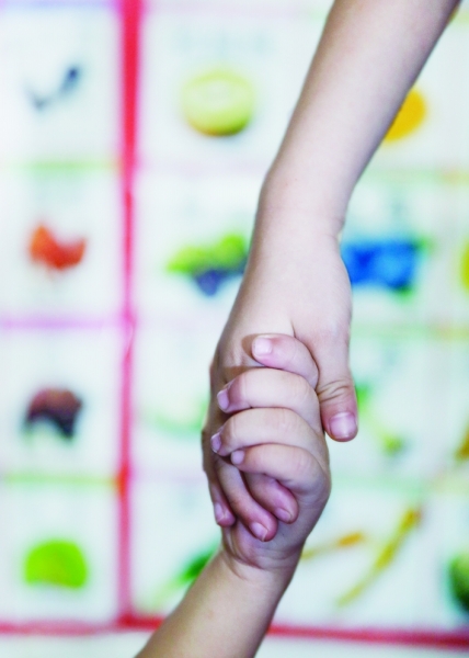 2014年6月29日,广州,得知“单独二孩”政策即将出台后,已经育有一女的苏平抓紧时间“抢生”了第二个孩子。图为苏平5岁的女儿琳琳拉着弟弟的小手。 |
