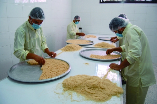 由于制作工艺的限制,叙利亚传统甜点至今主要采取手工方式生产。但社会发展和人口增长导致需求增加,海外移民增多直接导致国外订单增多,仅仅依靠传统的手工制作,其效率已经无法满足需求。较大型的传统甜点加工企业目前开始在和面和烘焙等“粗笨活”阶段引入现代化生产设备,诸如和面机和电烤箱等,以提高生产效率。但几乎90%的制作流程都依然必须遵循古老的手工制作标准,传统甜点制作在叙利亚仍然被算作手工技艺。