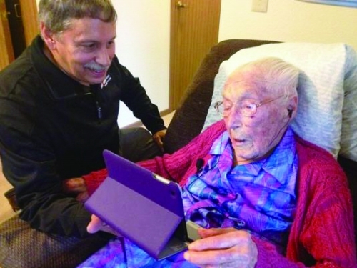 114岁高龄的斯托尔在朋友的帮助下学会了使用iPad |