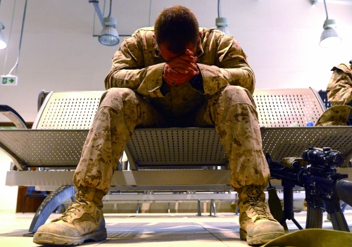 2014年10月26日,阿富汗赫尔曼德,一名即将撤离的美国海军陆战队员在营地中休息。 |