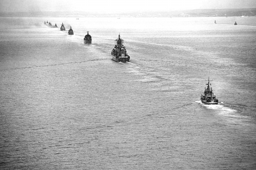 今年8月的一次军演中,俄舰艇编队在萨哈林岛附近海域航行。 |
