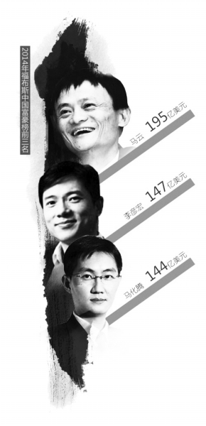 近日,2014年福布斯中国富豪榜新鲜出炉。不出外界所料,首次公开募股的中国电子商务巨头阿里巴巴资产一路飙升,其创始人马云的个人财富也显著增值,以195亿美元轻松摘得首富桂冠。