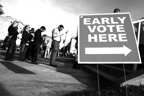 11月3日,阿肯色州小岩城的民众排队等待投票。此次中期选举以36.4%的投票率创下了72年来的新低。 |