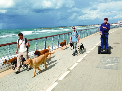 我们入住的宾馆坐落在特拉维夫海边,从后门出来,眼前便是一望无际的地中海。沙滩上,几名少年正在欢乐地打着排球,远处的冲浪手随着海浪起起落落。海边大道上,晨跑者、骑自行车锻炼的人和牵着一大群宠物的“遛狗专家”与我们擦身而过。来海边运动,已成为城市居民的生活习惯;体感车,则是这些运动中较特别的一种。
