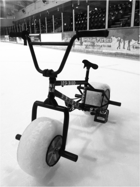 而他的最新发明是一款使用冰制轮胎的自行车。