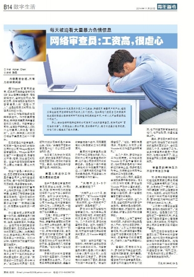 网络审查员:工资高,很虐心