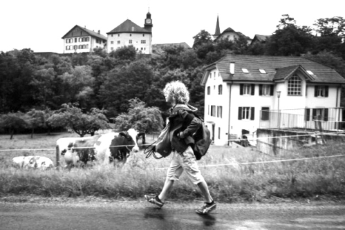 生活在瑞士的9岁男孩Leon走在放学回家的路上 |