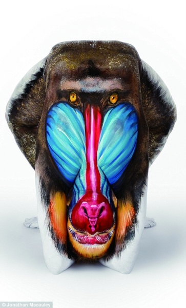 别看只是简单的几张照片,却给这位27岁的艺术家带来了世界性的声誉和不菲的收入,因为这些栩栩如生的动物都是借助柔韧的人体,通过恰当好处的彩绘表现出来的。
