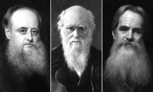(由左至右)威尔基·柯林斯,查尔斯·达尔文和威廉·霍尔曼·亨特 |