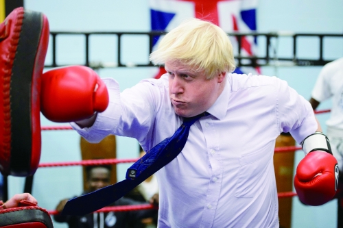 2014年10月28日,英国伦敦,伦敦市长鲍里斯·约翰逊造访“为和平二战”拳击学院,并大方展示拳术。 |