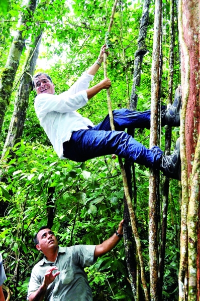 2013年12月4日,厄瓜多尔特纳亚马逊丛林区,厄瓜多尔总统拉斐尔科雷亚在访问期间展示“攀爬大法”。据说,爬树可是菲尔雷克亚的“独门绝技”。 |