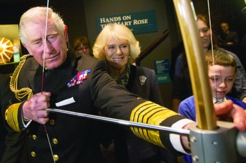 2014年2月26日,英国朴茨茅斯,查尔斯王储与王妃卡米拉出席活动,并在活动中大秀“拉弓” 英姿。 |
