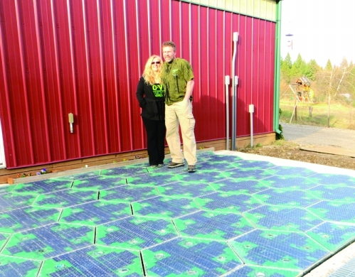 布鲁萨夫妇站在自家的太阳能电池板路面上 |