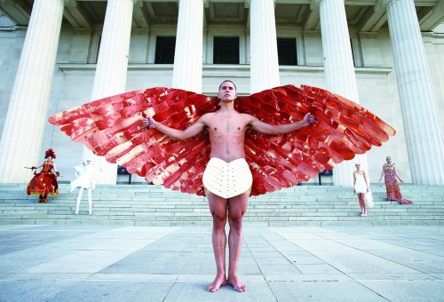 当地时间11月20日,世界可穿着艺术大赛作品展开幕式在新西兰奥克兰战争纪念馆举行。