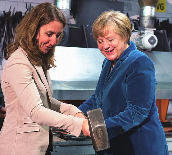 当地时间12月1日,德国柏林,德国总理默克尔访问柏林公共交通公司,抡铁锤堪称“女汉子”。 柏林公共交通公司(简称BVG),负责营运柏林的地铁、电车及巴士服务,曾于1984~1991年间营运西柏林的城铁,并于1989~1991年间营运磁悬浮铁路。BVG也是柏林-勃兰登堡交通局(VBB)的成员公司之一。 |