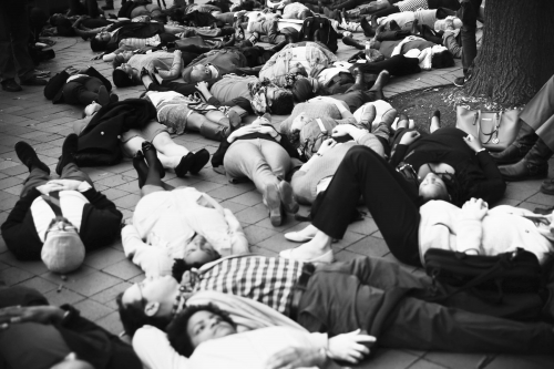 12月1日,华盛顿的示威者“横尸”表达对白人警察枪杀非洲裔青年的不满。图片来源CFP |