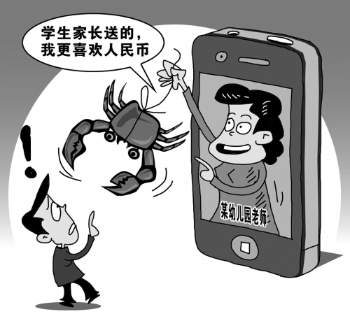 幼儿园教师在“微博炫耀家长送大闸蟹” 后被辞退。