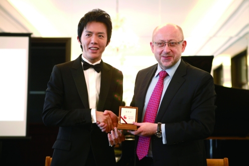 波兰驻华大使塔得乌什·霍米茨基向李云迪赠送中波建交65周年纪念章 |