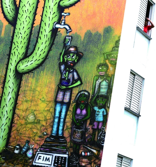 不久前,巴西遭受了80年来最严重的旱灾。当地时间11月25日,巴西艺术家绘制的以干旱为主题的壁画出现在圣保罗的建筑物上。 |