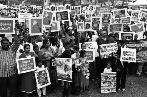 泰米尔人手持标语在马来西亚吉隆坡集会 |