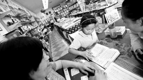 来自互联网的竞争让全美许多书店关门大吉。但在圣柏盖谷,它们“进化”成了另一种样子。中国式书店不仅代送快递、修电脑,还卖乐透彩票。其中一家书店化身为教室,另一家则“兼职”做便利店。