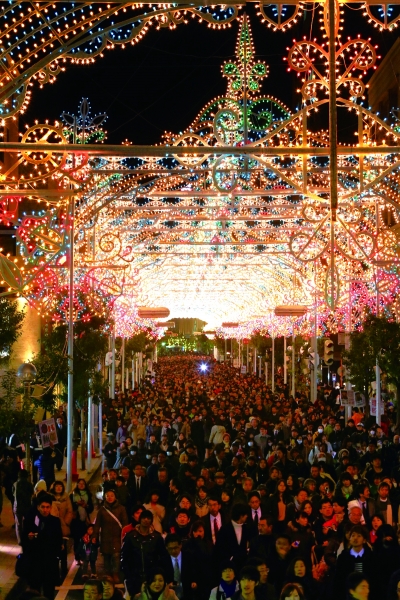 12月4日,日本神户的一家商场用20万只彩色灯泡做装饰。这是一年一度的“神户光之盛宴”活动的一部分。1995年1月地震后,神户开始举办这一活动,意在提振当地民众的精神。本次活动将持续到12月15日,预计将吸引350万人参与。