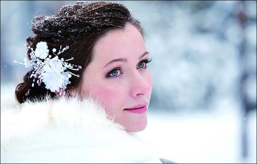 婚纱的选择也非常有限,不能选择露肩的、开领的,那会把你的脖子和胳膊冻坏。收腰的、窄裙摆的也不行,因为你还要在婚纱下面穿上厚厚的保暖裤,再把裤腿塞进翻毛长筒靴里。