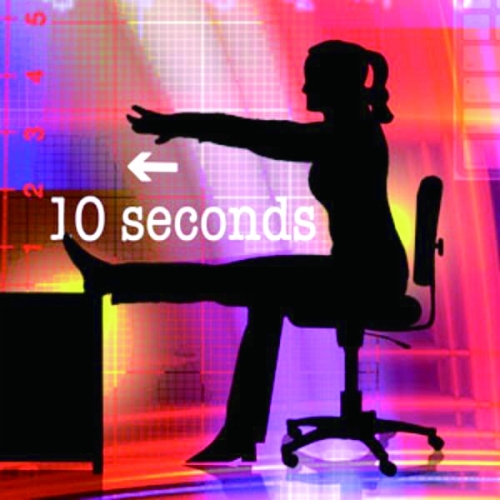 1.腿筋伸展 这个动作可以同时放松腿筋、腰部和小腿。将椅子推离办公桌,腿放到桌上,脚向上向内翘,身体前倾(保持背部挺直),坚持10秒。之后换另一条腿,按相同的步骤重复。 |