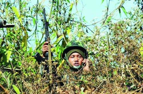 1月19日,缅甸克钦邦,克钦独立军的一名士兵在放哨。