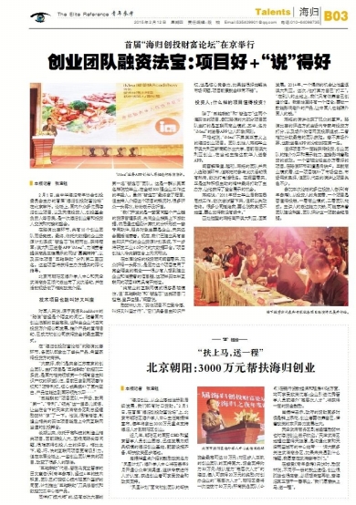 北京朝阳:3000万元帮扶海归创业