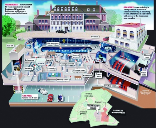 来自海湾国家的统治者计划将名下康沃尔豪庭的3座大宅打通,合并成一座拥有两部电梯、温泉泳池、健身房、游戏室、雪茄室、果汁吧、佣人房,以及专为安放晚礼服准备的衣帽间和更衣室的超级豪宅。