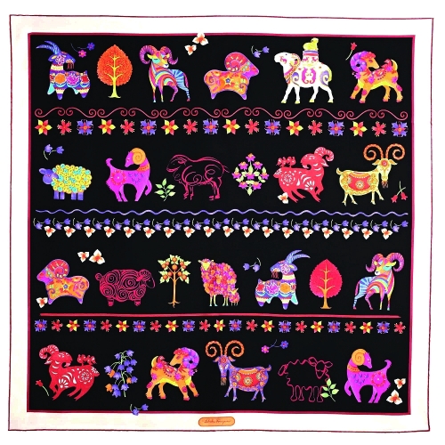 意大利经典皮具品牌菲拉格慕的羊年印花丝巾。 |