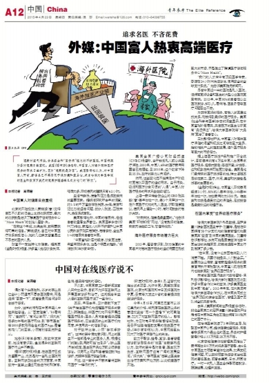 外媒:中国富人热衷高端医疗