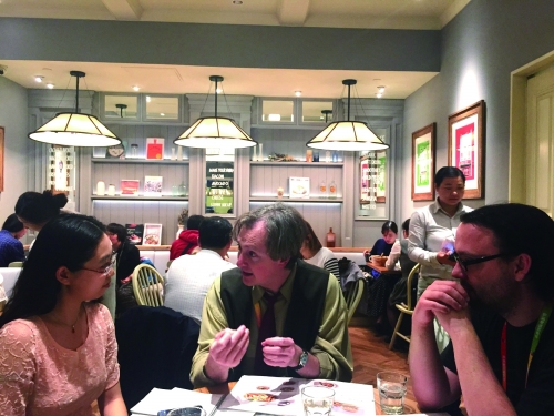 《青年参考》记者在采访《艾丽在尖叫》的导演杰瑞米·托马斯(中)和制片人科林·谢尔顿(右)。 |