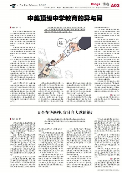 另外,美国的大学、科研机构、医院、政府机构、商业机构等都有专设部门,负责协调高中生的课外社会实践和科研活动。因此,美国的高中生可以到科研机构实习,在实验室里跟专业人士搞研究,也可以到各级政府机构去当官员助理、议员秘书……这在中国难以想象,别说没什么机构能让学生体验,忙于题海战术的学生们恐怕也分身乏术。