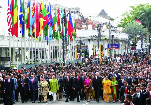 4月24日,习近平主席在印度尼西亚出席万隆会议60周年纪念活动,并与其他亚非国家领导人一起参加缅怀先贤的“历史性步行”,当地群众簇拥在道路两旁挥舞着各国国旗。