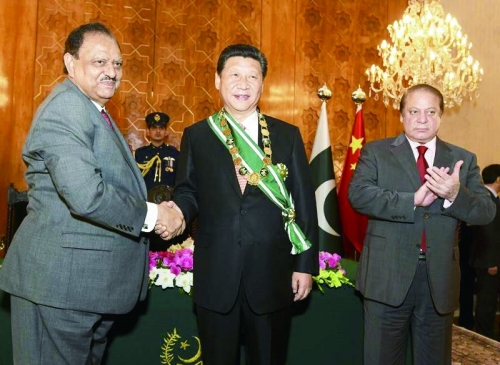 4月21日,习近平主席在伊斯兰堡接受巴基斯坦总统侯赛因授予的“巴基斯坦勋章”。 |