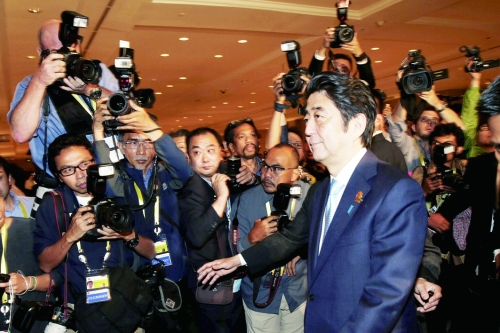 一名日本官员告诉法新社,这是两位领导人上任以来的第二次会谈,双方试图修复因领土争端和战争遗产受损的关系。