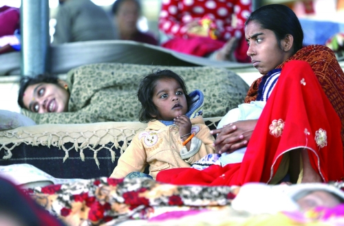 4月27日,摄于加德满都安置灾民的体育场内。 |