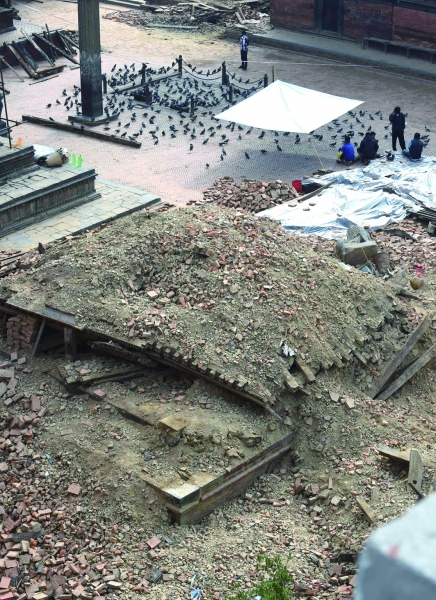 8.1级地震导致加德满都的世界文化遗产杜巴广场上大部分建筑倒塌。 |