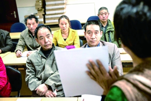在家乡河北,王军平(音)是个面朝黄土背朝天的农民。在内蒙古,他是整天呆在地下,不见天日的煤矿工人。但在不久前的一天下午,49岁的王军平穿上了得体的西装,在职业介绍所学习扫帚和拖把的正确用法。他即将成为北京庞大的地铁系统中的一名清洁工。