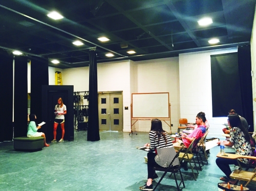 两个同学在练习一幕场景,之后老师和同学会给予点评。陈韵正摄 |