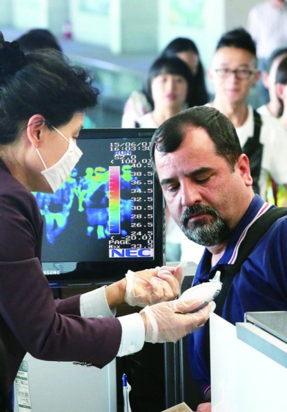 6月1日,韩国仁川机场对入镜旅客加强检测。 |