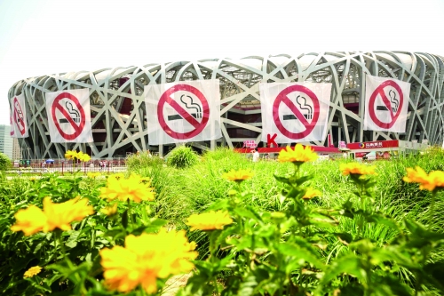5月31日,北京国家体育场“鸟巢”悬挂巨幅禁烟标志。 |
