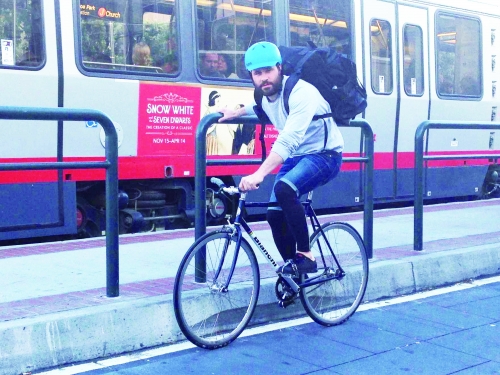 正在旧金山街头为客户快递商品的巴斯蒂安·莱曼