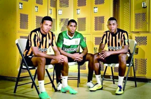 3位叛逃的古巴前国脚迈克尔·常(左)、奥迪斯奈尔·库伯(中)和黑维尔·科德福斯。 |