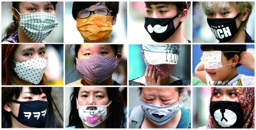 首尔街头,人们戴着各式各样的口罩。 |